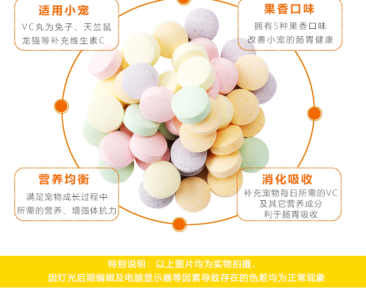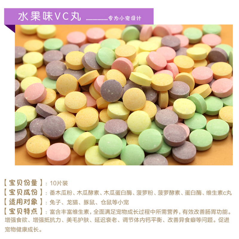 Rabbit Fruit VC Pills Supplement Multivitamins Guinea Pig Guinea Pig Chinchilla Pet Snacks 10 Pieces Bottle