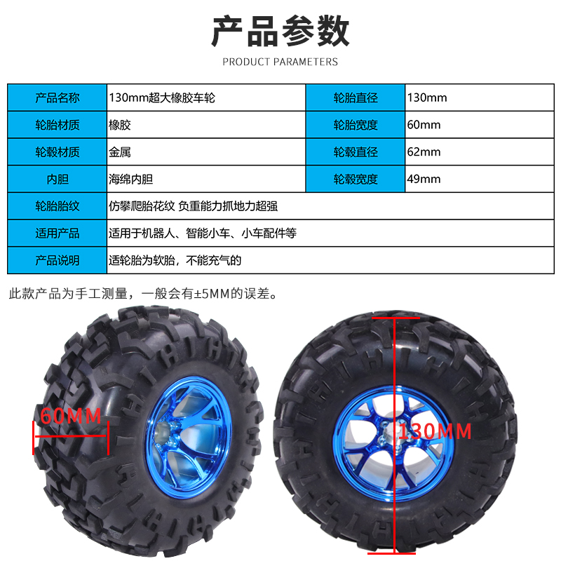 Smart Trolley Tire Rubber Wheels Robot Trolley Accessories Chassis Wheels 130mm 160g