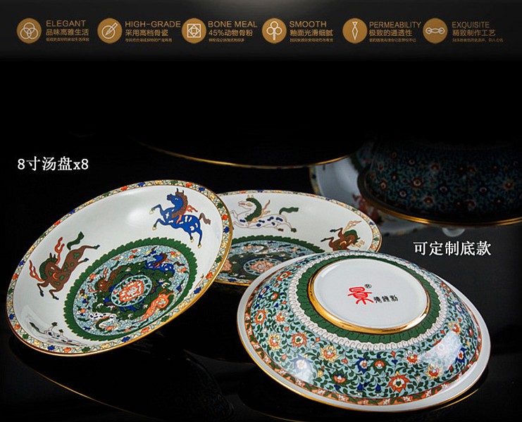 Bowl Disc Suit Engraving Relief Gold Series Ceramic Cutlery Bone China Cutlery Cutlery Set Bowl Tray Dish Spoon Suit