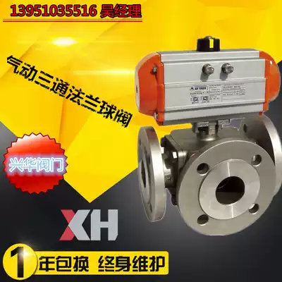 Q644 5F-16C P pneumatic stainless steel cast steel three-way flange ball valve DN25 32 40 50 65 80
