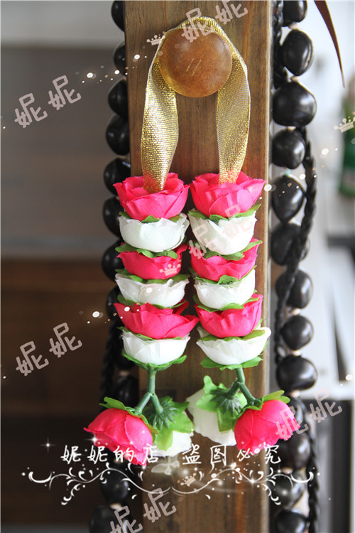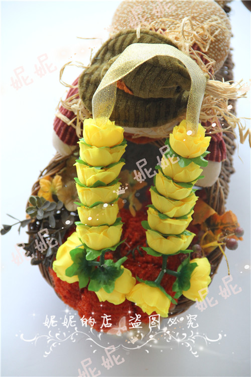 Thai hand-made custom wreath gold ribbon long and long wreath colorful yellow red blue simulation small wreath