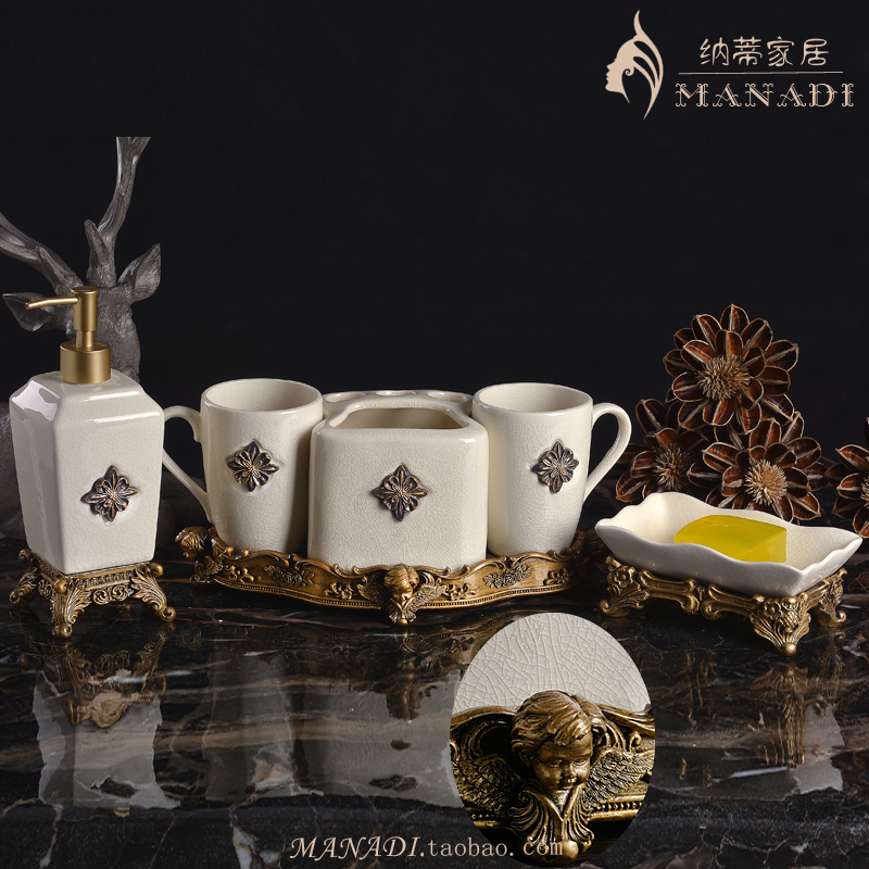 Ceramic one-piece bathroom with five sets European style bath room Supplies kit minimalist toothbrush cup gargling cup wash-up suit
