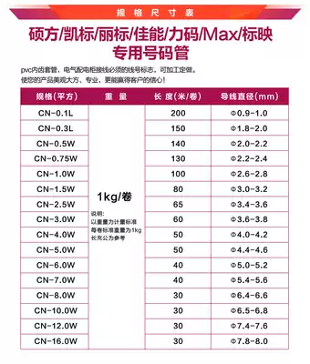 Shuofangkai marking line number machine line number number tube coding casing wire PVC blank plum blossom tube 1 5 square inner teeth