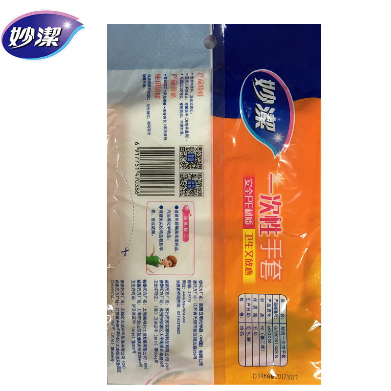 Miaojie disposable PE food catering gloves transparent thickened safe and non-toxic 30 packs 900 whole boxes
