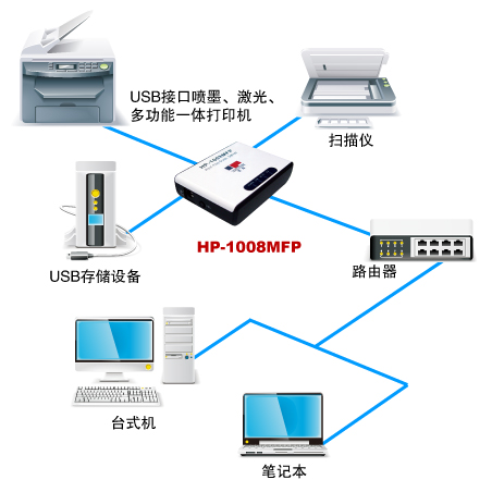 Fixed-line HP-1008MFP 100 trillion USB print server network scanning all-in-one print server-Taobao