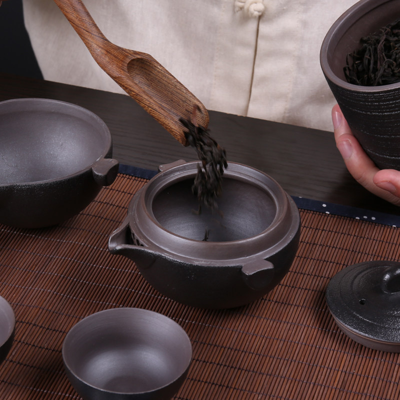 Chiang Ceramics Kung Fu Tea Furniture Office Cup Creative Black Pottery Tea Ceremony Express Guest Cup Travel Tea Set Courtesy Kit