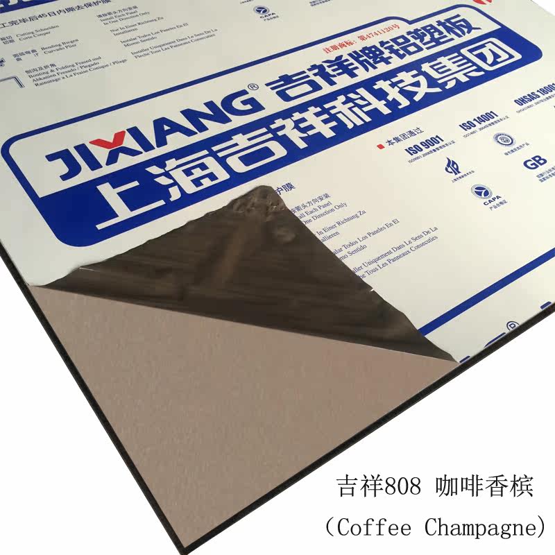 Authentic Shanghai auspicious aluminum plastic plate 3mm10 silk coffee champagne inside and outside curtain wall advertising door head dry hanging aluminium plastic plate