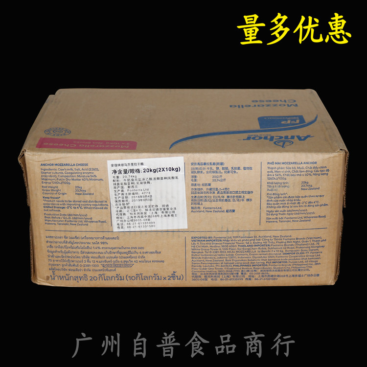 Anjia Mozzarella cheese cheese block 10kg*2 whole box pizza baked rice Brushed hot dog Guangdong Province