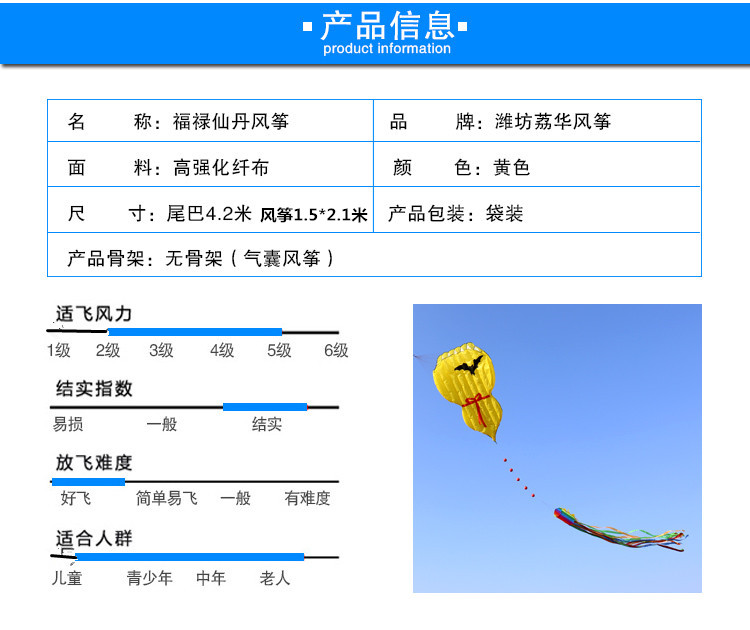 The new Weifang Lihua software has no skeleton Fulu elixir three-dimensional treasure gourd kite long tail is easy to fly
