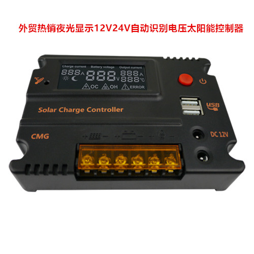 Foreign trade hot selling CMG luminous display 12V24V10A solar controller 24 hours output LCD controller