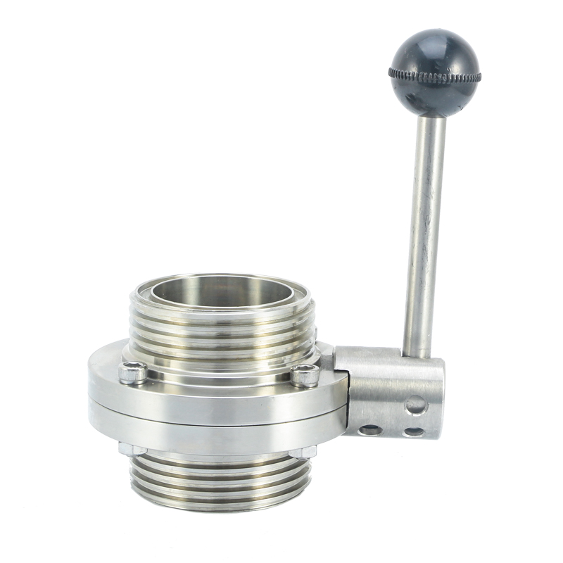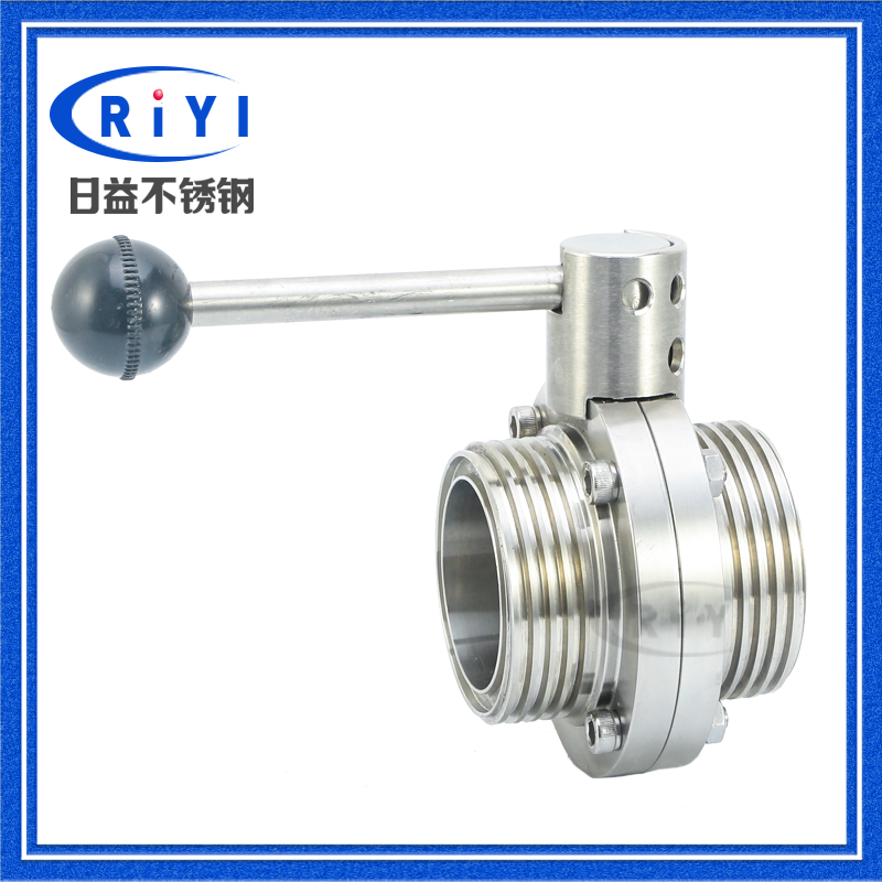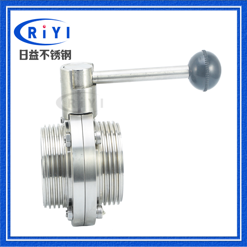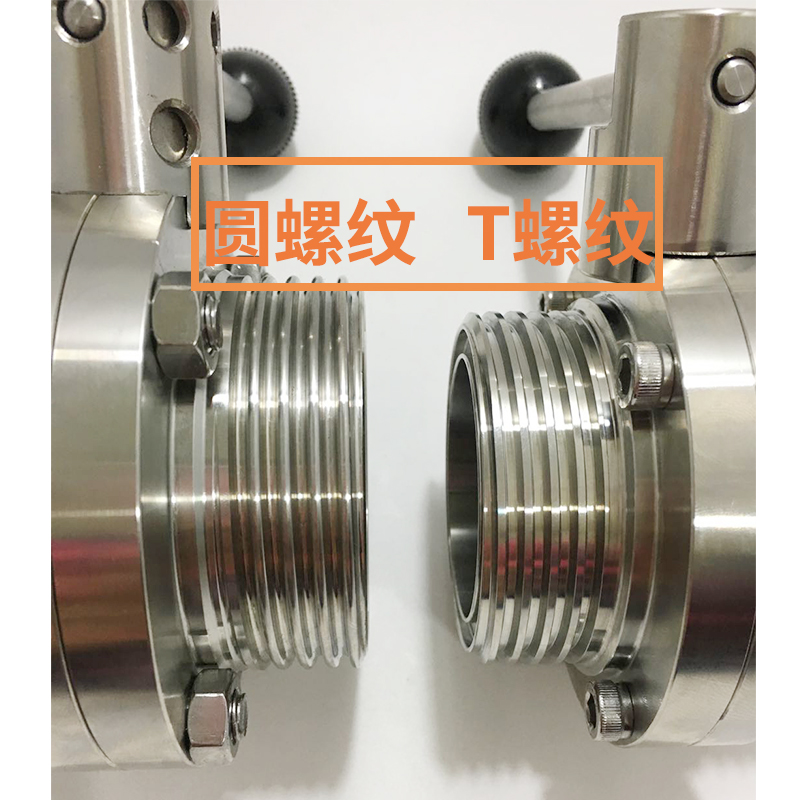 304 stainless steel sanitary grade SMS round thread live butterfly valve T type threaded manual external wire valve by Ren oil Ren