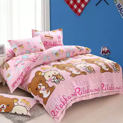 Pure cotton cartoon three or four piece set cute pink bed hats sheet type 1 2 meters 1 51 8 meters bed Angel bear