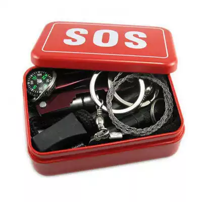 Outdoor emergency supplies SOS emergency box Flint wire saw multifunctional flashlight emergency whistle set