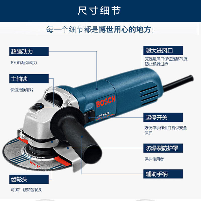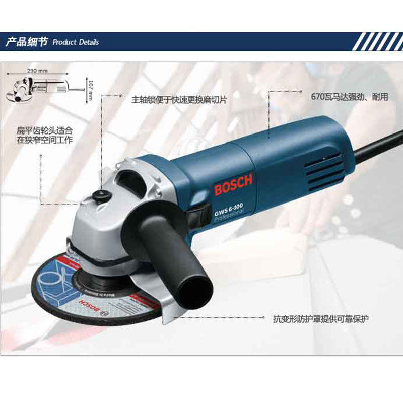 Bosch GWS6-100 angle grinder Masonry cutting machine Metal grinding machine Polishing machine grinder 670W power