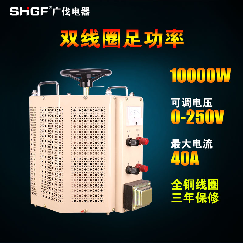 Guangfa voltage regulator 220v single phase 0-250v adjustable AC contact high power supply voltage regulator 10kw