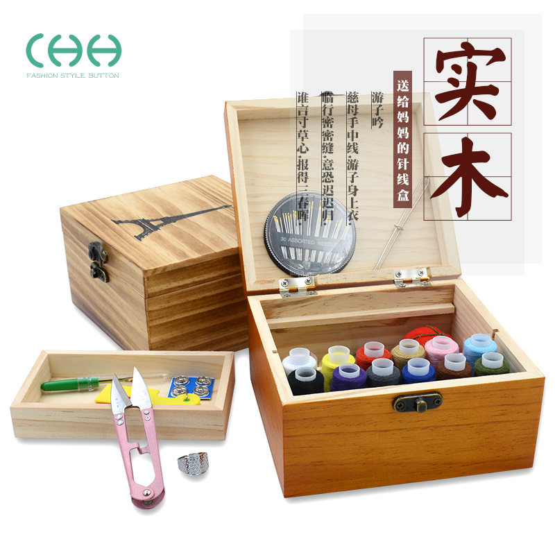 Needlework box set Household needlework package tools Solid wood small storage box Hand sewing thread Sewing thread Handmade wood
