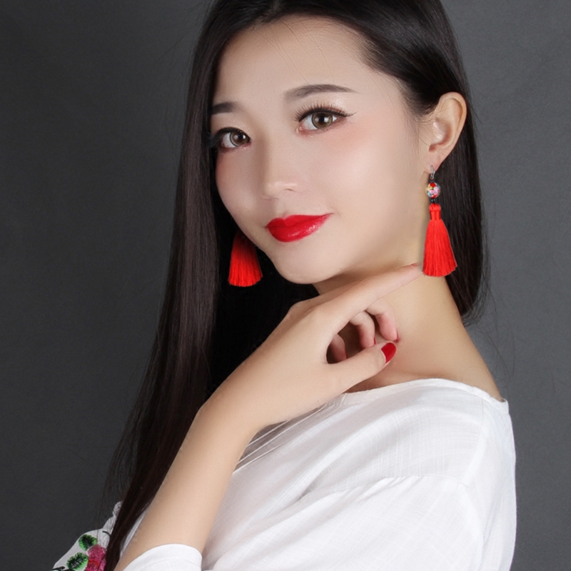 Retro Red Glazed Pearl Earrings National Wind Red Streaming Su Earrings Long version of earrings Lady Temperament 100 Lapped Ornament Woman