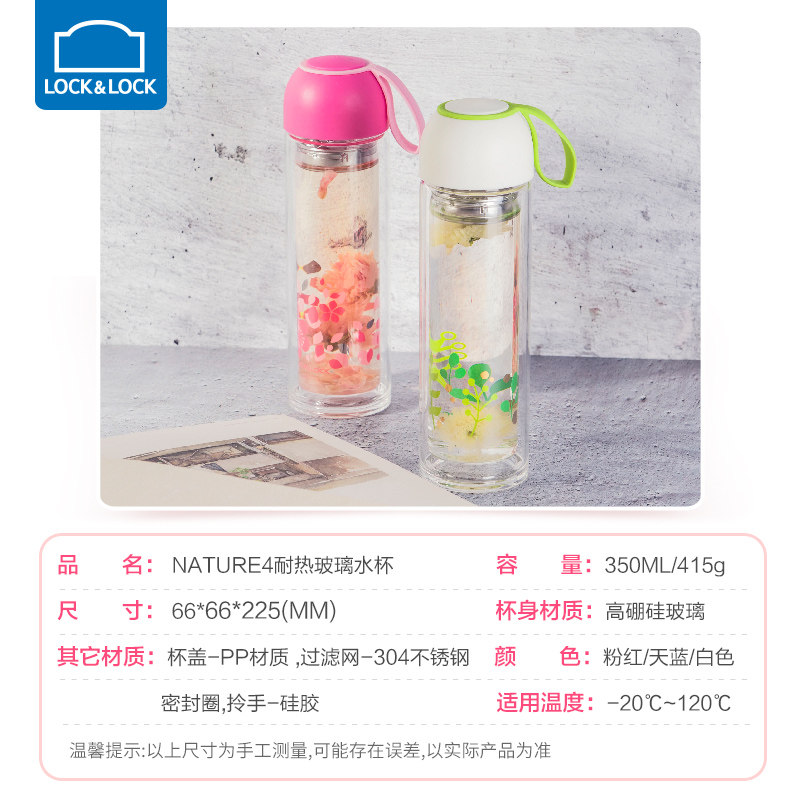 Lock lock lock double heat-resistant high borosilicate glass water cup Portable creative office cup with lid filter 350ml