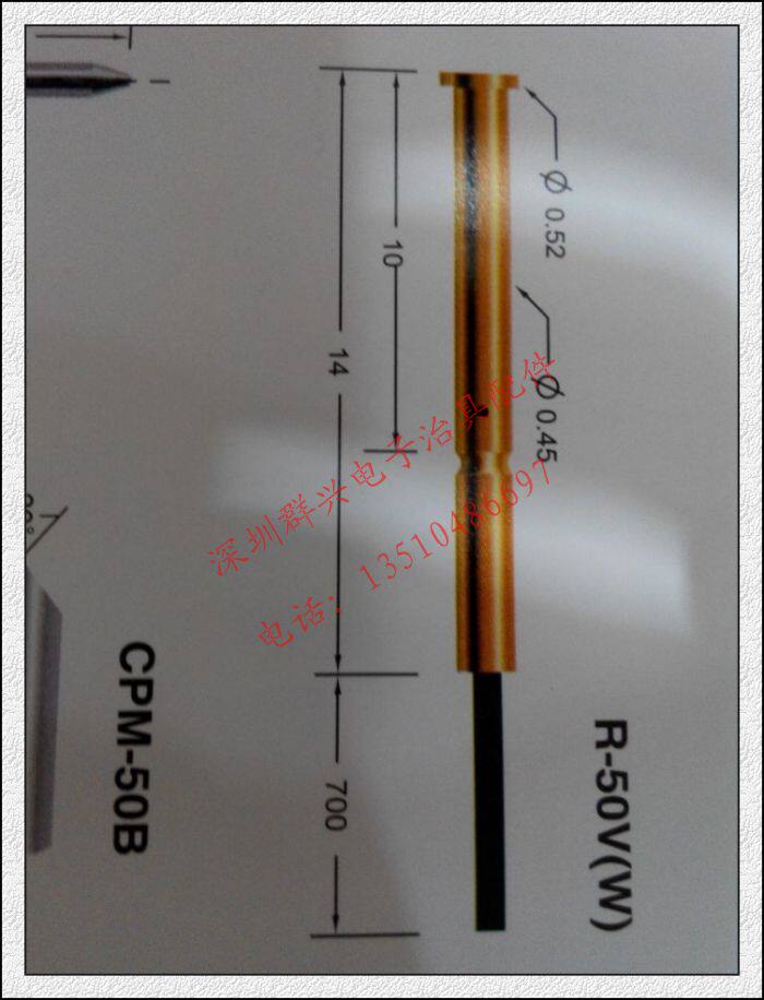 P035-J gold plated P035-F gold plated 50 #-J F 0 35 probe small quadrons straight up round head