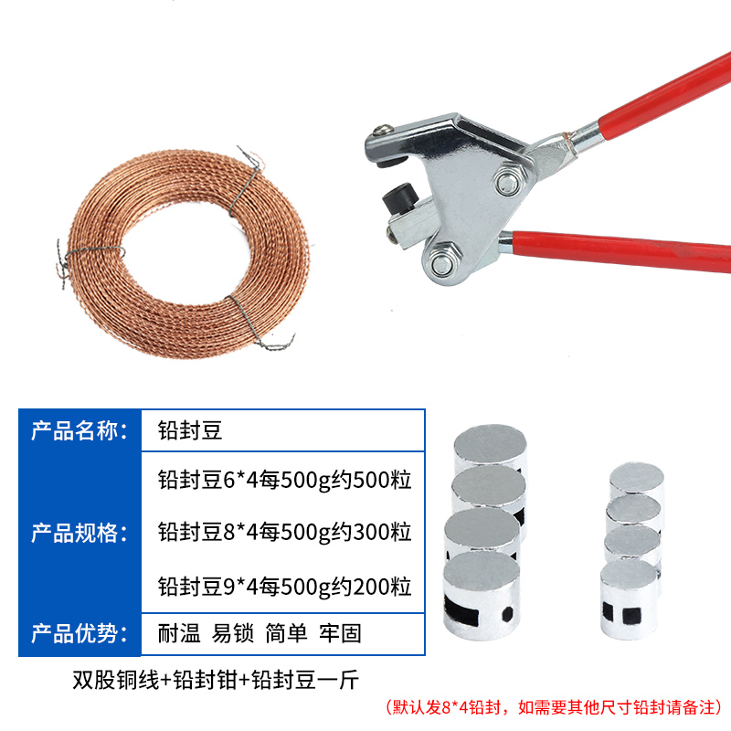Sealed beans 6*4 Sealed beans 8*4 Sealed beans 9*4 sealed wire (copper)One roll of sealed wire (iron)One roll of sealed pliers set One copper