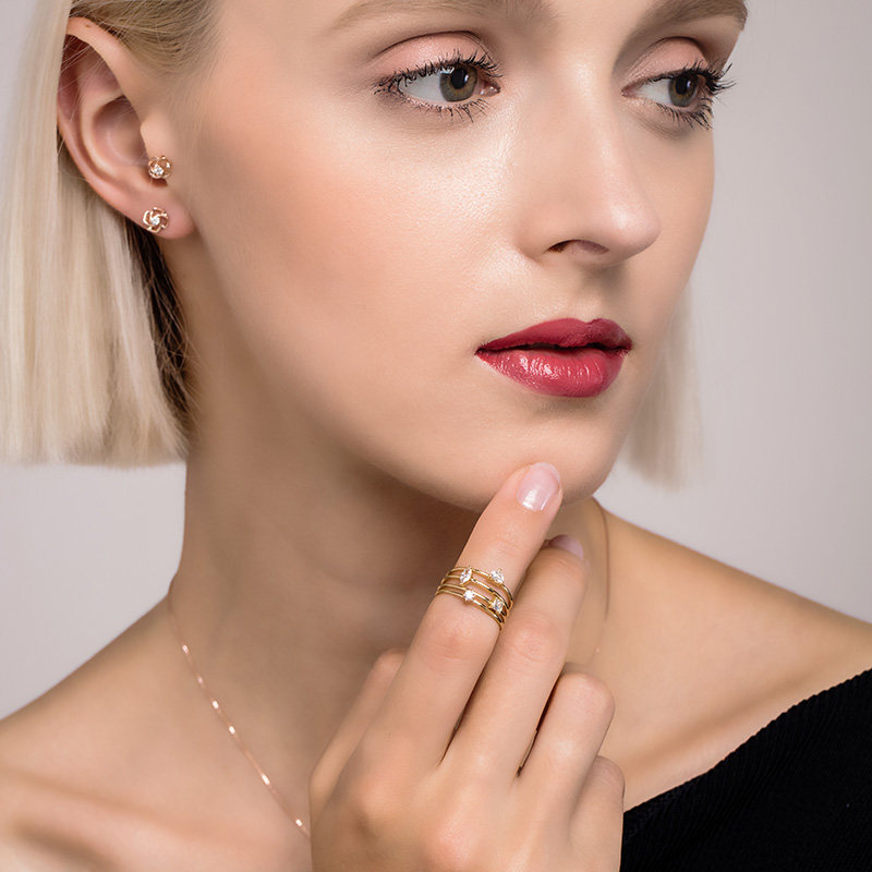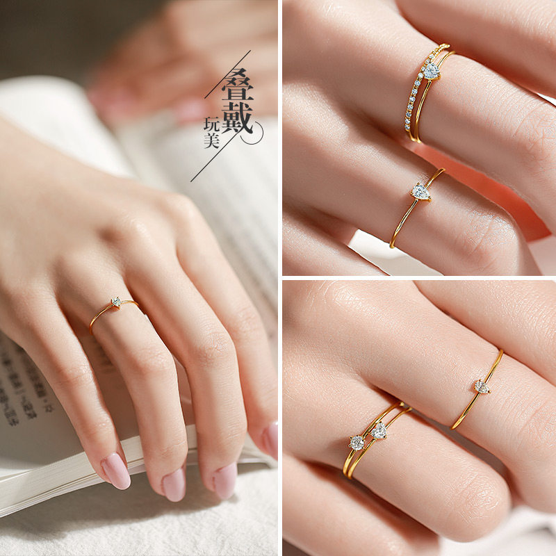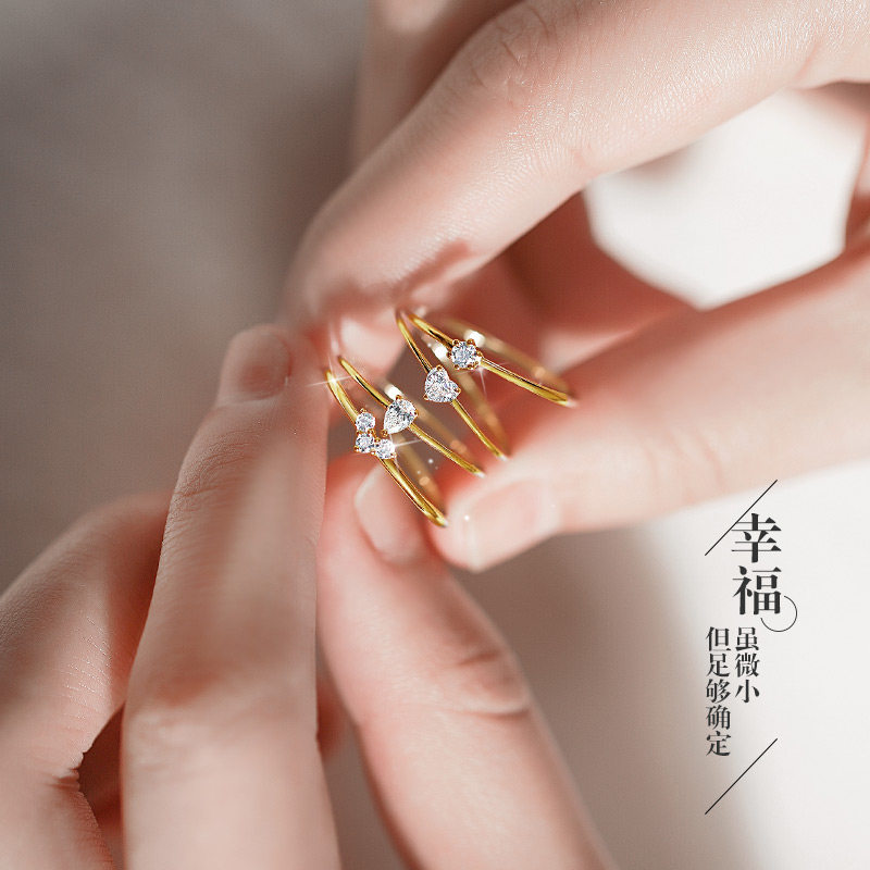 18K gold courting diamond ring real drill group inlaid with 750 tail ring female ring 10 Loving Shaped Joydrill Special Cabinet