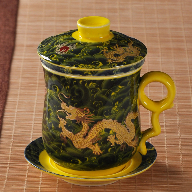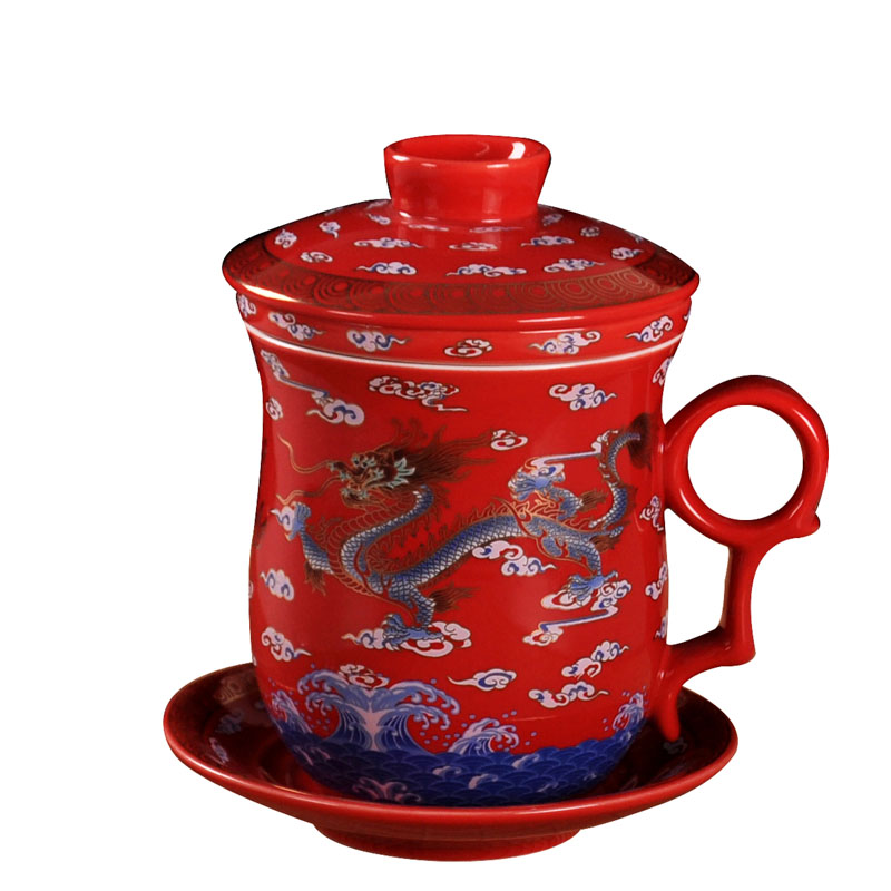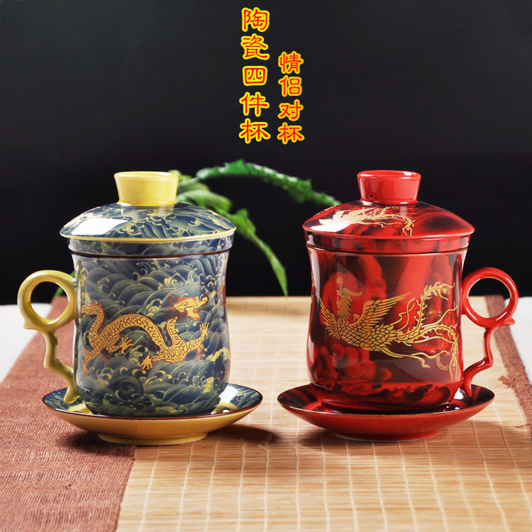 Four pieces of tea cup ceramic filter with lid office meeting Personal tea Porcelain Porcelain Floating tea Cup Sub-Jingdezhen Dragon Cup
