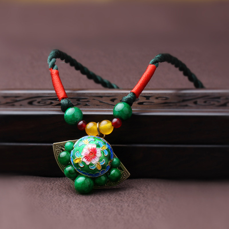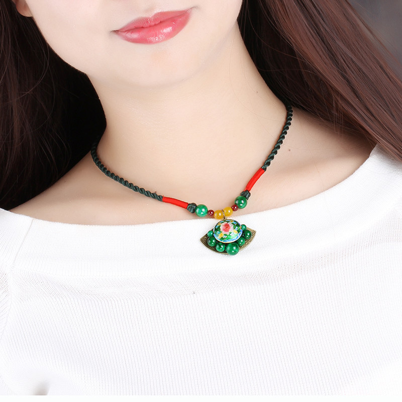 National Wind Necklace Woman short section Green Jingtai Blue Lock Bone Chain Retro Palace China Wind Winter 100 Hitch Necklace Ornament