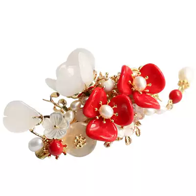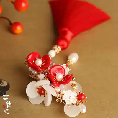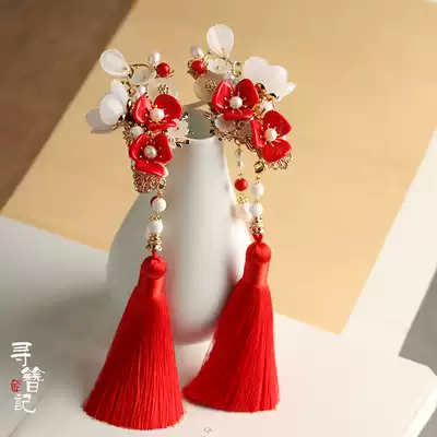 Handmade Hanfu Hair Accessories Ancient Dress Headwear Classical Hairpin Cheongsam Accessories Tassel hairclip Red Lady