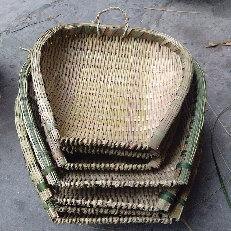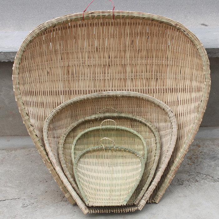 Bamboo Shaw Kei Bamboo Weaving Dustpan Pure Handwoven Household Rice Washing Bamboo Basket Washing Vegetables Bamboo Shau Kei Storage Kitchen Utensils