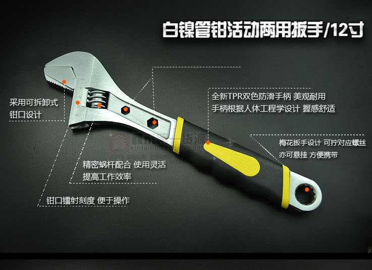 Industrial Grade 12 Inch Tube Pliers Living Mouth Dual-use Wrench Multifunction Self-Tight Water Pipe Pliers Adjustable Wrench Quick Wrench