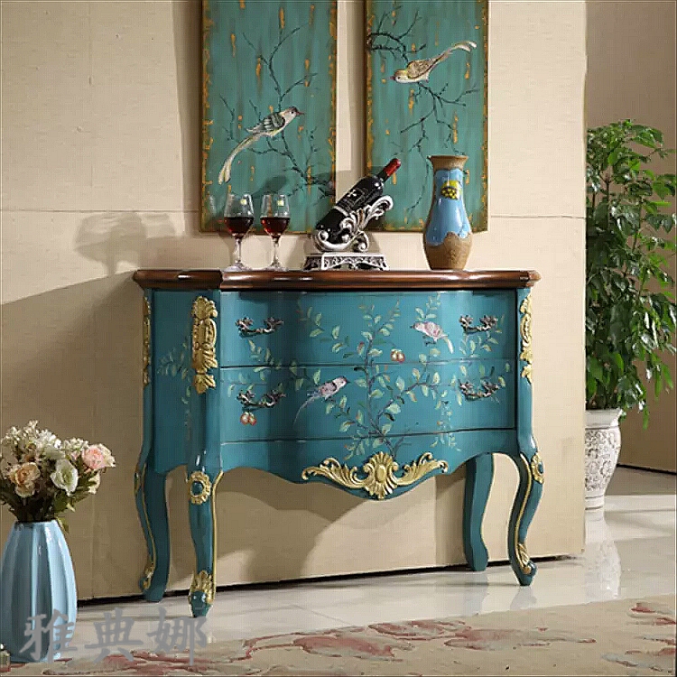 European-style porch cabinet Mediterranean solid wood decorative cabinet simple American-style hall cabinet solid wood carved hall cabinet K3028