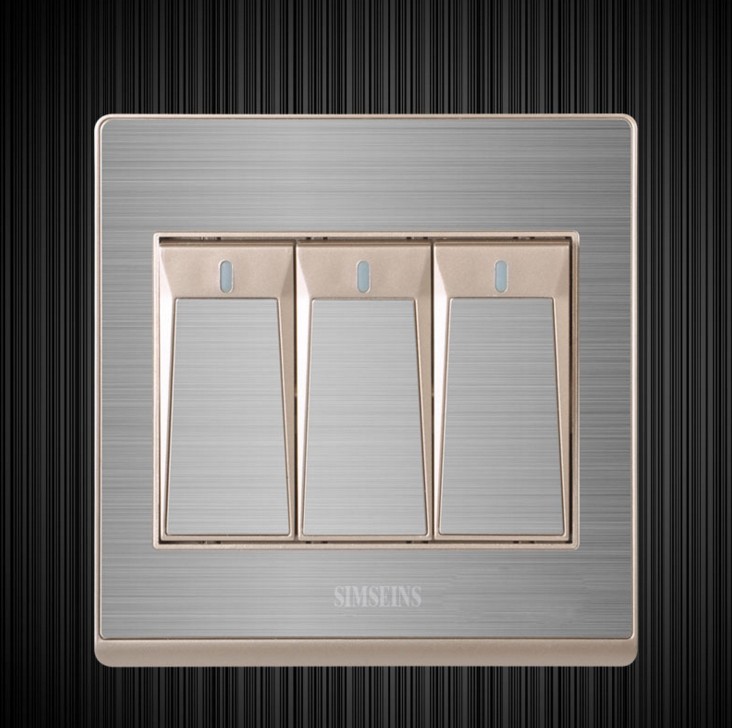 Silver drawing stainless steel wall switch socket three - digit unified 33 open control switch household panel 86