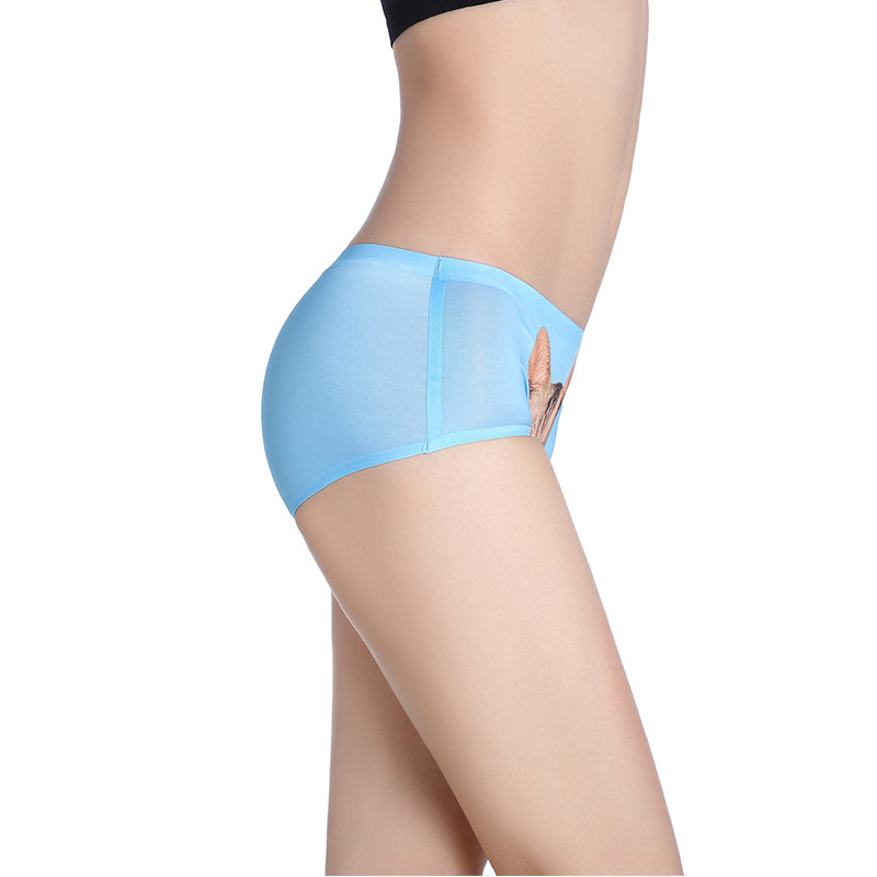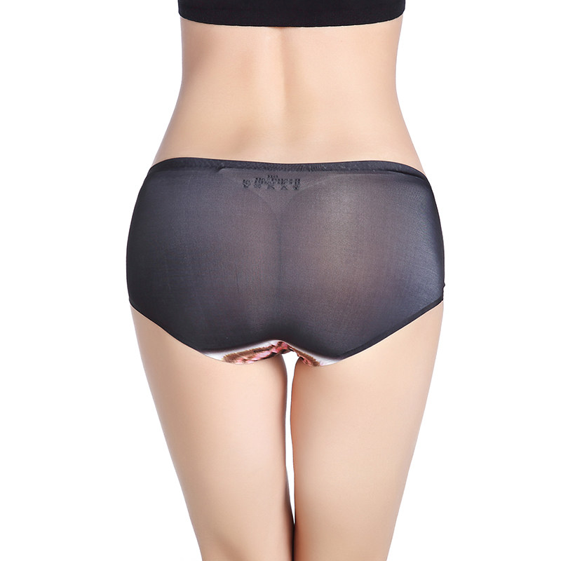 3D cat couple underwear women ice silk waist seamless cat head sexy ladies briefs anti-light