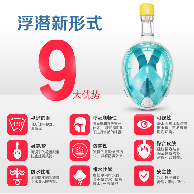 THENICE DIVE FULL HOOD FULL DRY FOLDING Straw Diving Mask Nasal Sucker Diving Mirror