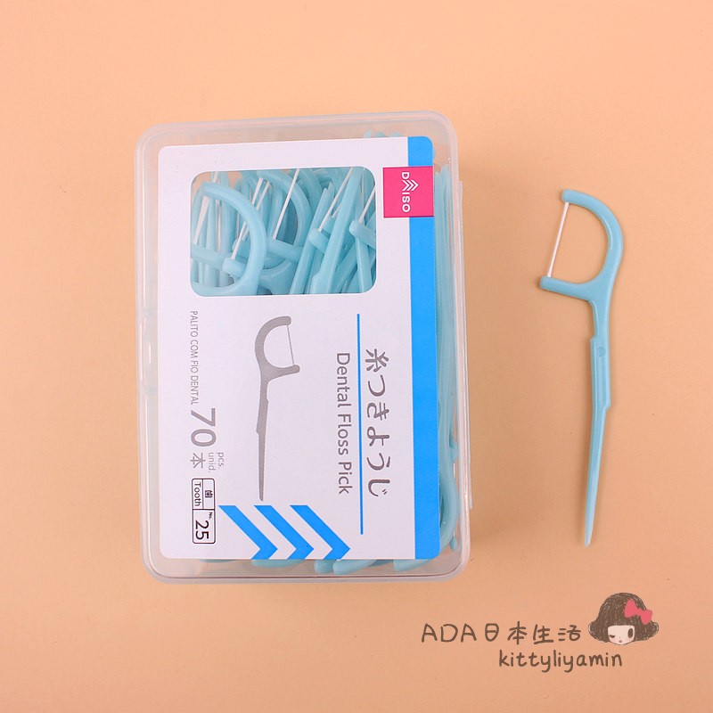 Japanese large creation DAISO portable flat line dental floss stick front dental floss back end toothpick 70 only