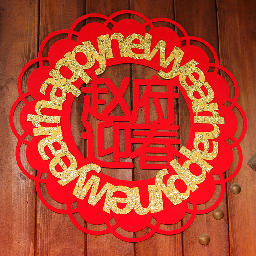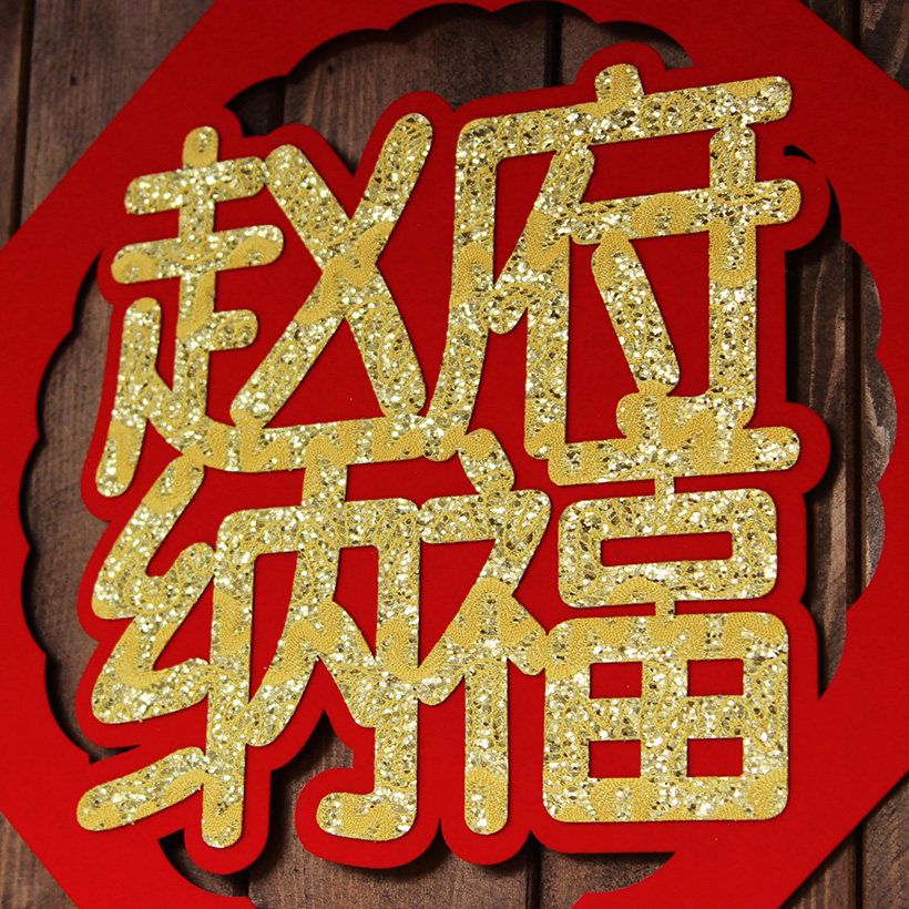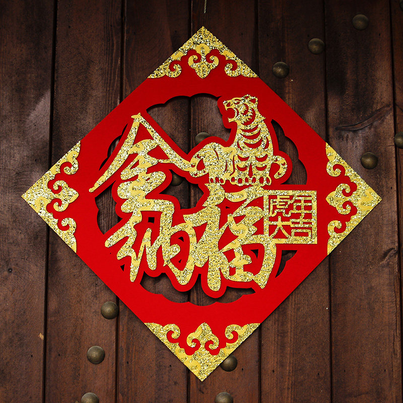 Housewarming Tiger Year Spring Festival Gilded Flocking Custom Fu Zi Paste Wall Sticker Door Sticker New Year's Party Company Layout Decorative Window Flowers