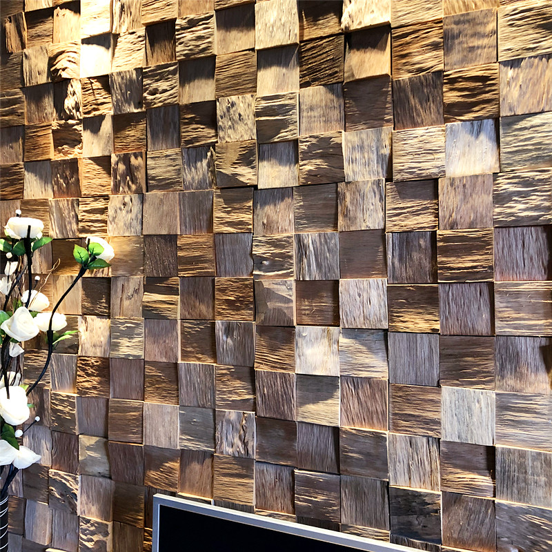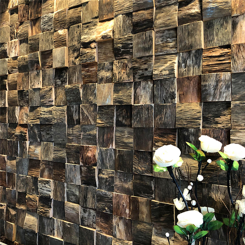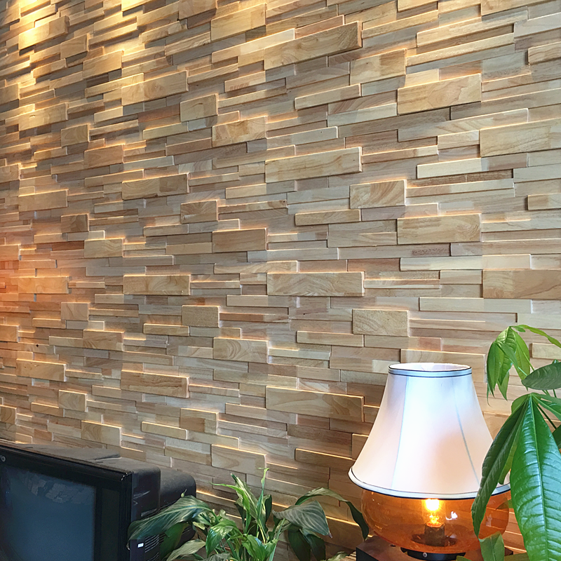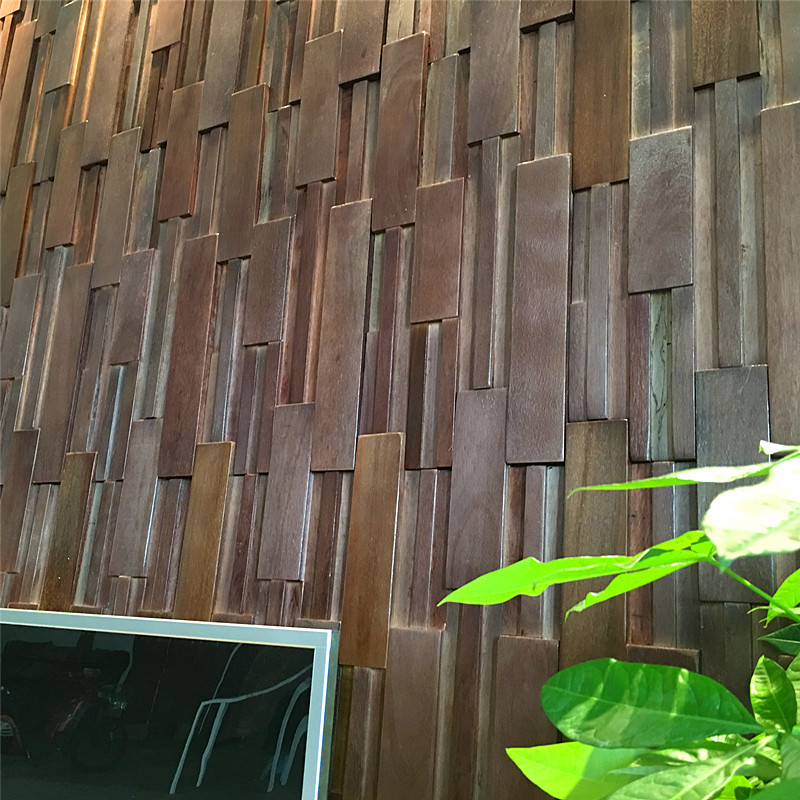 Solid wood mosaic TV background wall wooden mosaic bedroom background wall B & B three-dimensional simple hotel decoration