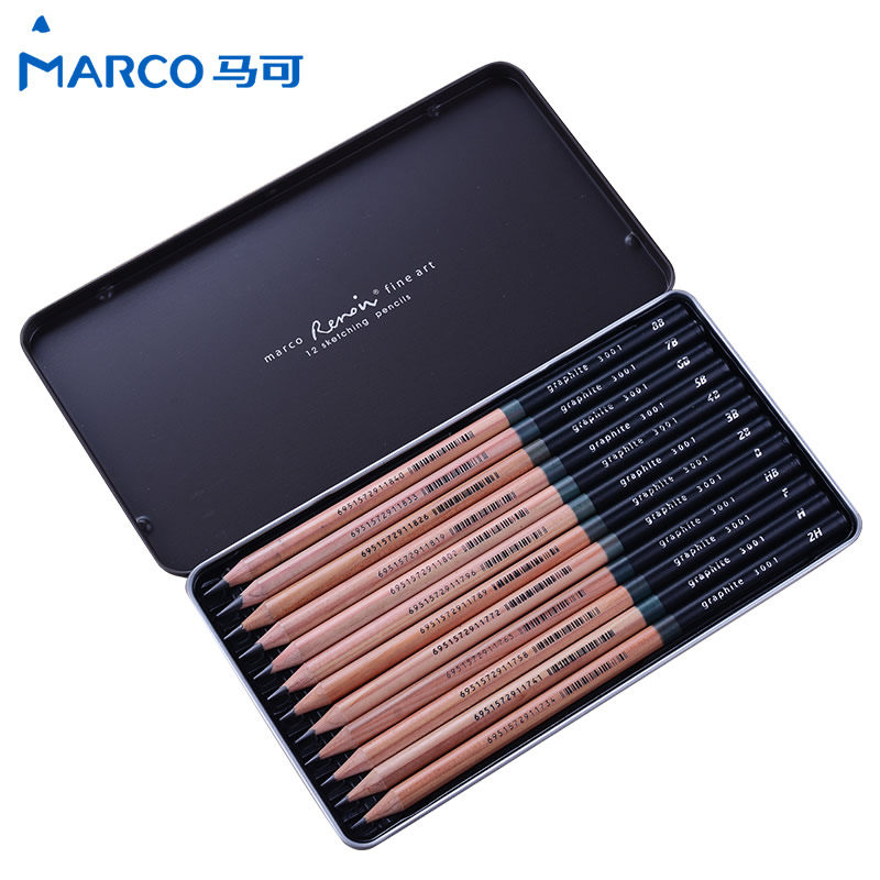 Marco Marco 3001 Renoardo grayscale professional art drawing iron box sketch pencil sketch pen 2 than pencil exam 2b pencil set art supplies hb pencil