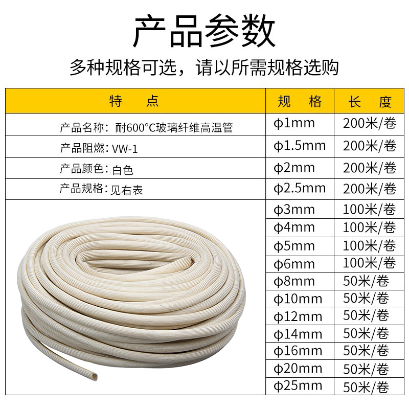 600 degree high temperature resistant casing insulation flame retardant fixed grain pipe wire protective sleeve yellow wax pipe glass fiber self-extinguishing pipe