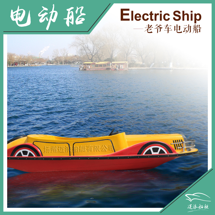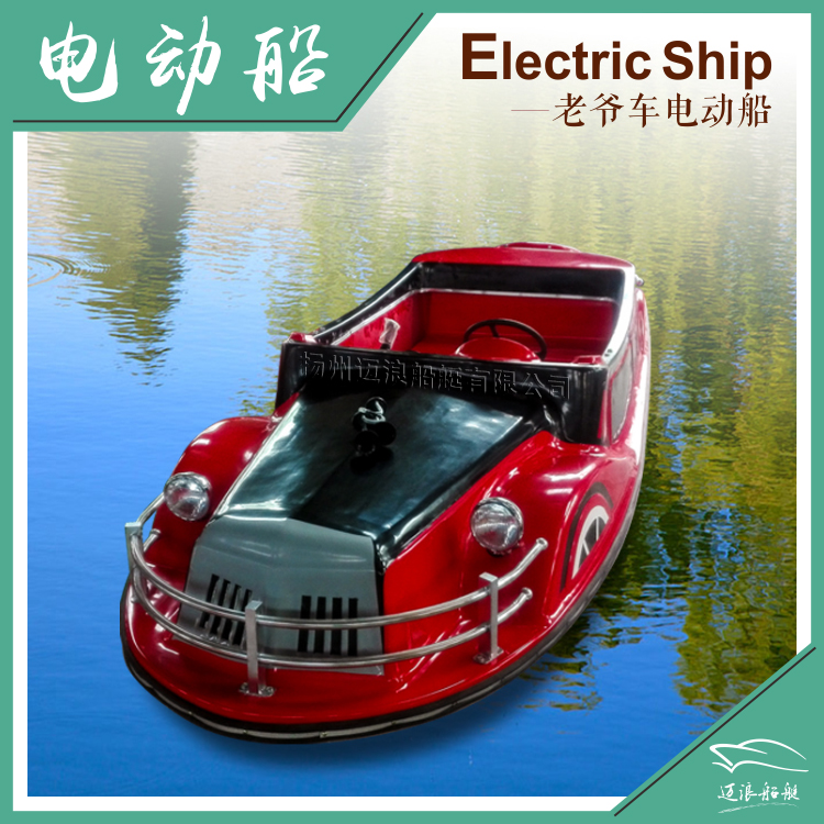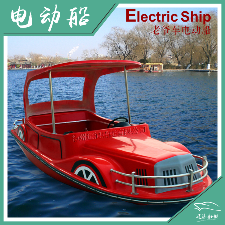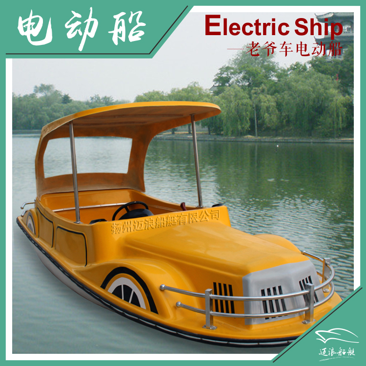4 Person Glass Fiber Vintage Car Watercraft Electric Boat Park Cruise Sightseeing Outdoor Sports Small Electric Boat