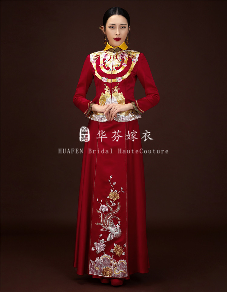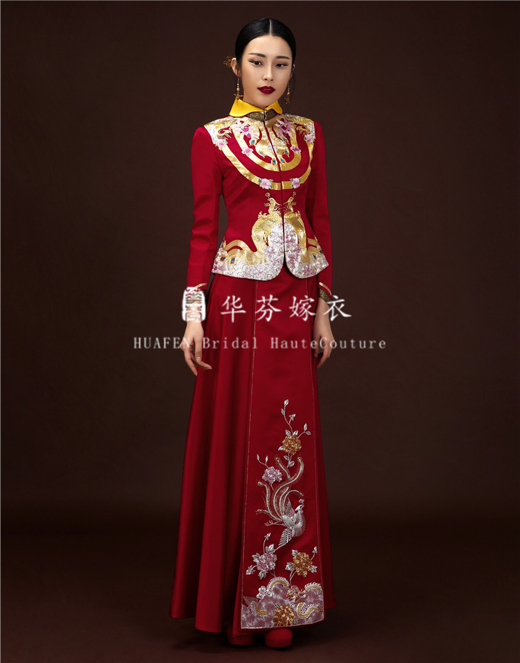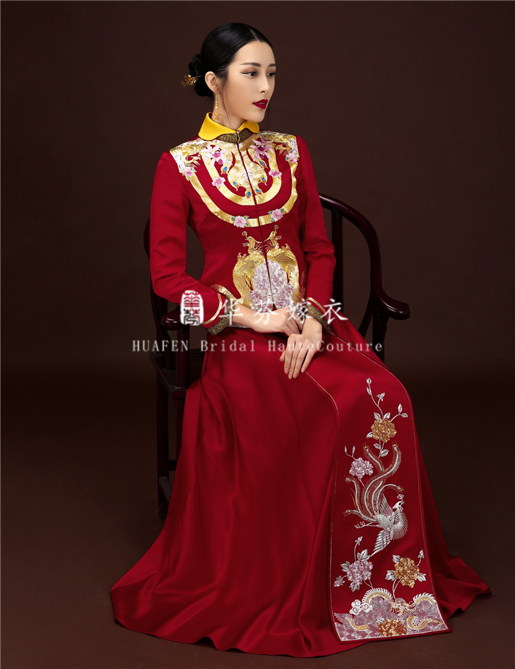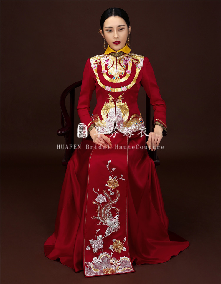 Huffin Wedding Dress Original Chinese Style Wedding handmade disc gold embroidery Luan Fengfeng dress Dragon Feng hung up with a slim fit