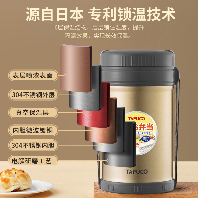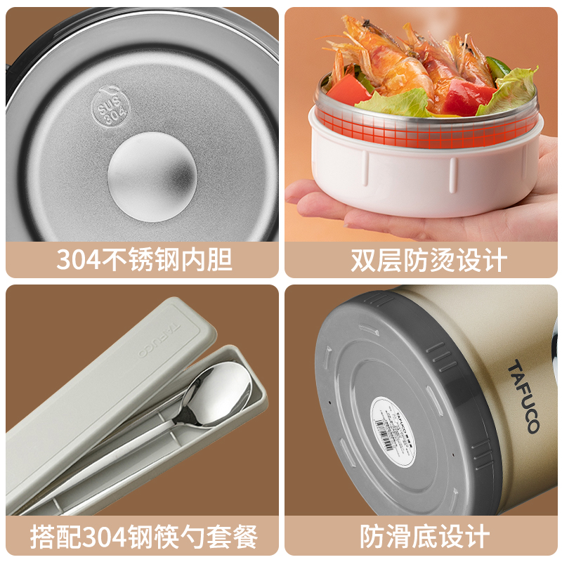 Japan Taifugao's new three-layer 304 stainless steel braised heat insulation lunch box 3-layer student pot rice bucket
