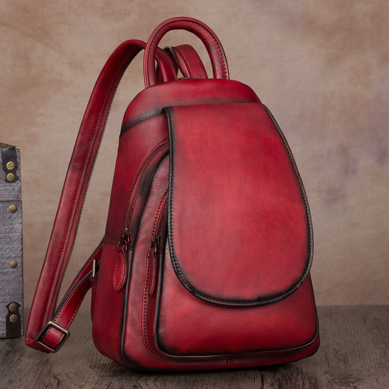 Retro Bag Girl Handmade Leather Bag Female Cow Leather Girl Bag Small Scapegoat Woman Double Shoulder Bag Women's Bag Genuine Leather 2022 New