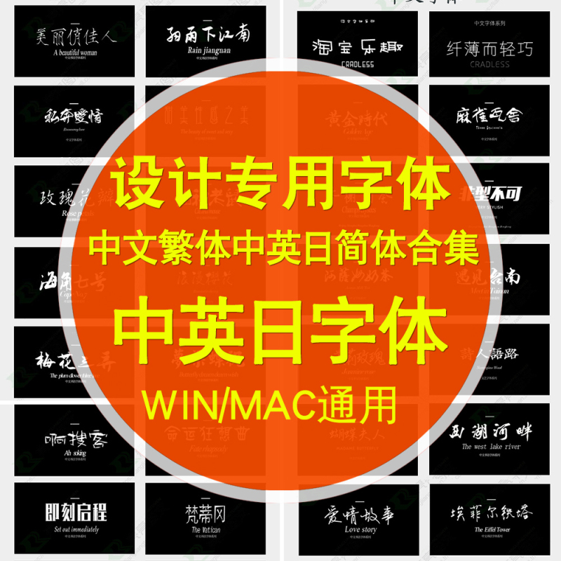 New calligraphy art font library Chinese and Japanese English ps font commercial download ai cdr brush material mac win
