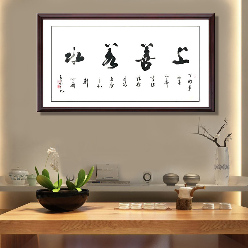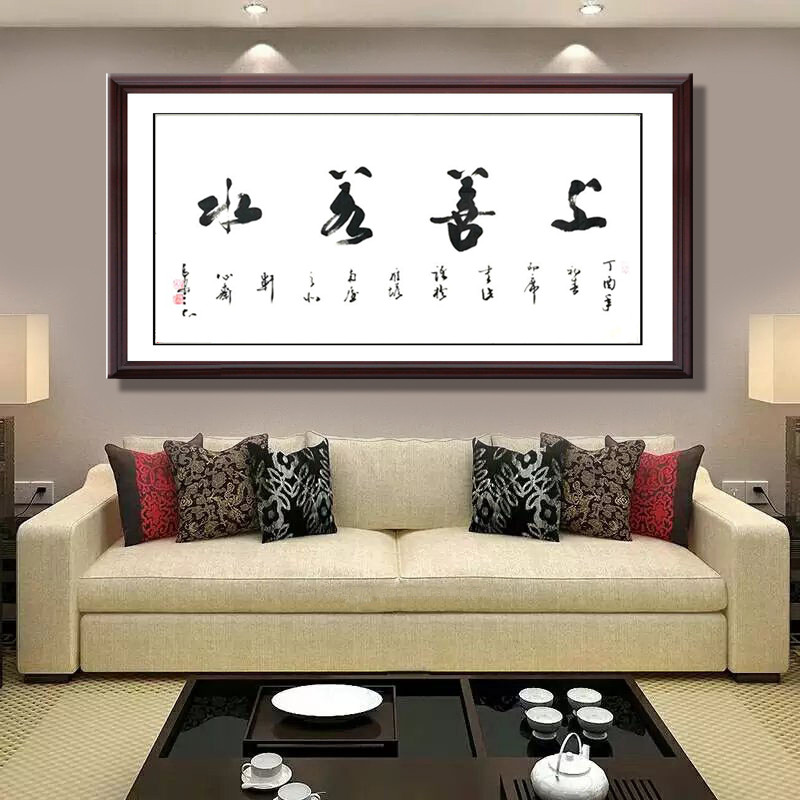 Wu San's calligraphy works on the living room study decoration calligraphy painting sofa background wall characters to give the author a group photo