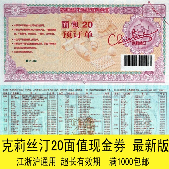 Christine Danby 20 yuan cash coupon Cake bread coupon cash card nationwide over 500