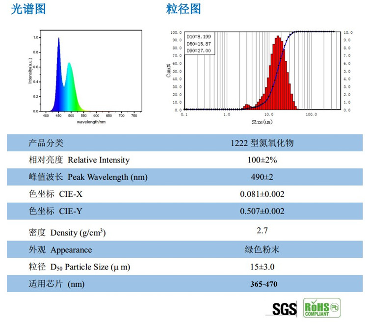 Full-spectrum oxynitride 1222 structure CRI 490-495nm blue-green phosphor for 95% white LED