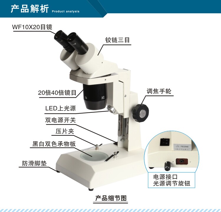 Stereo Microscope PXS-2040 Continuous Zoom Microscope Binocular Maintenance Anatomical Glazing No. 5 Factory
