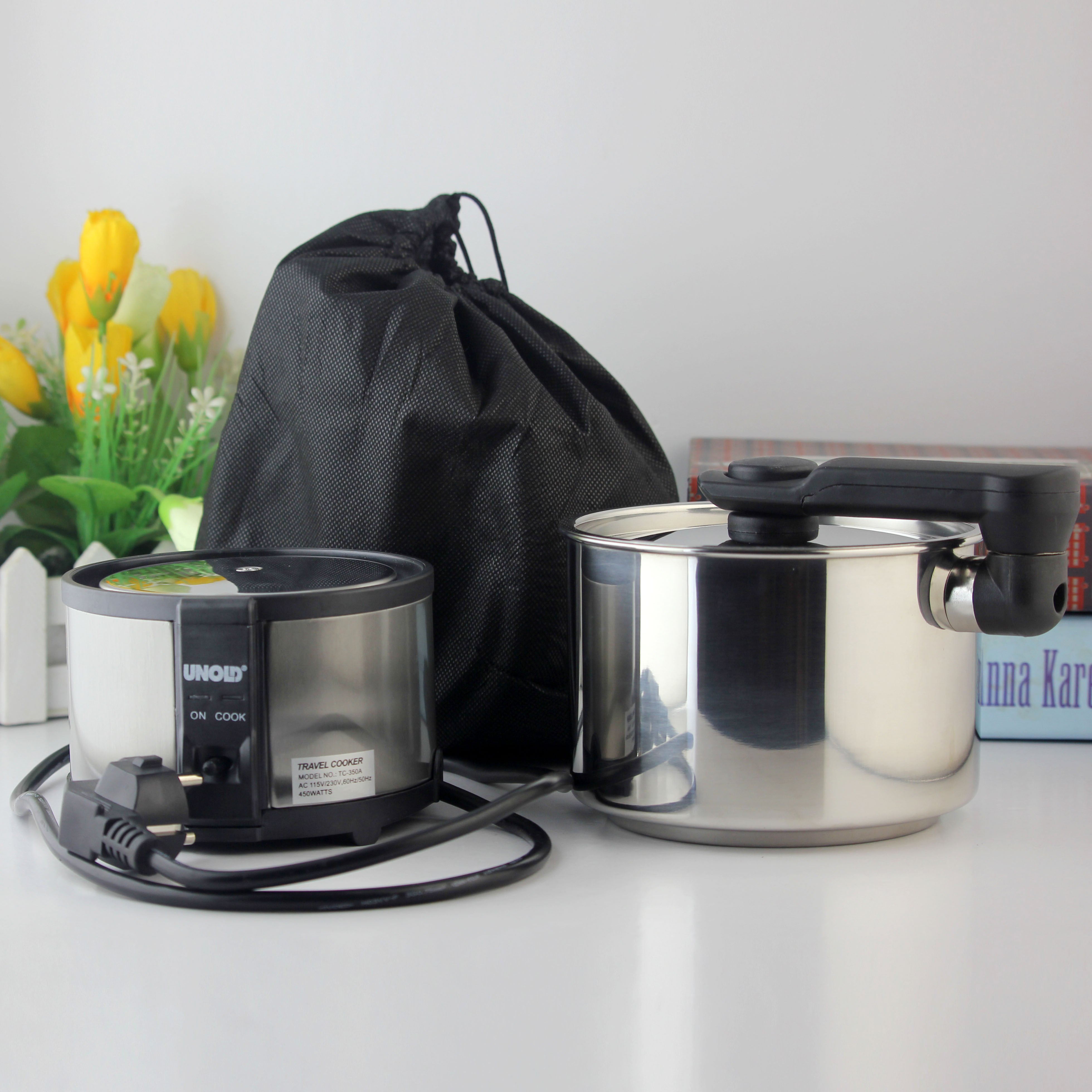 Export 110V dual voltage stainless steel portable travel cooker universal stewardess cooker US Taiwan US regulation travel cooker