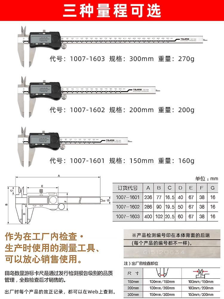 Tajima Japanese Tajima Vernier Caliper Digital Display High Precision Stainless Steel 0-150-200-300mm Industrial Grade